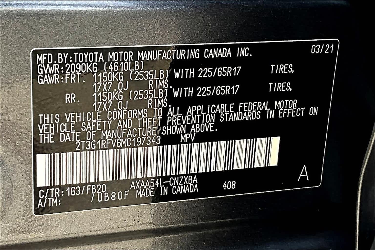 LE | 38,450 milesStock # PTS44781 | VIN # 2T3G1RFV6MC197343