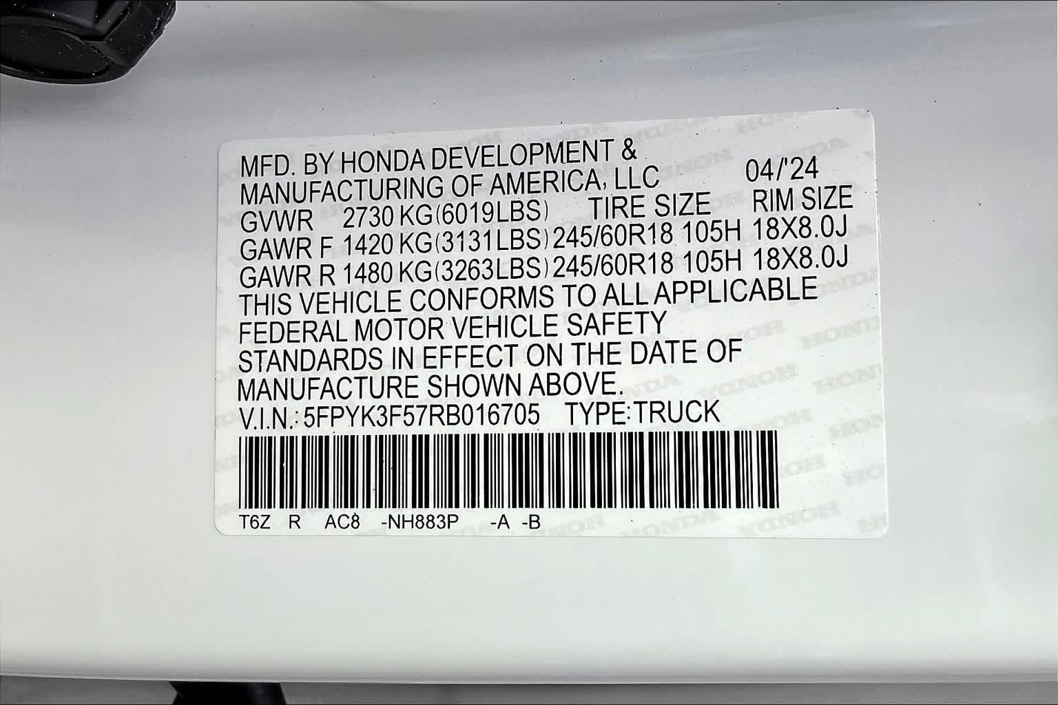 RTL AWD | 5 milesStock # W400969 | VIN # 5FPYK3F57RB016705