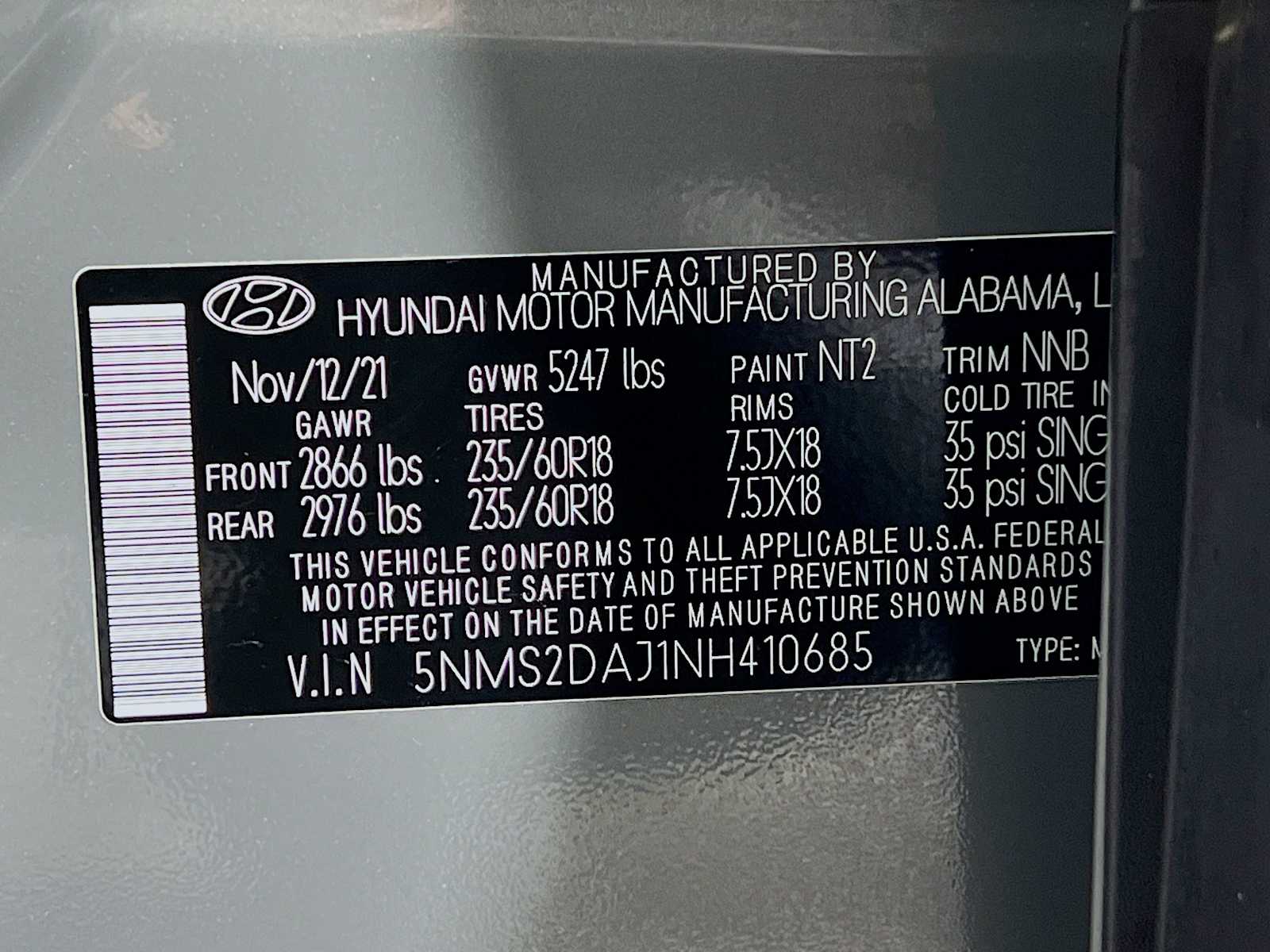 SEL | 51,537 milesStock # H16493A | VIN # 5NMS2DAJ1NH410685