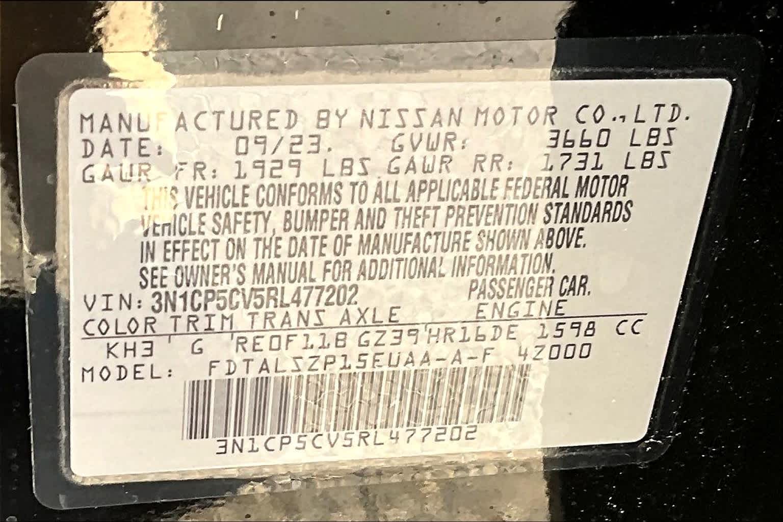 SV | 3 milesStock # N240113 | VIN # 3N1CP5CV5RL477202