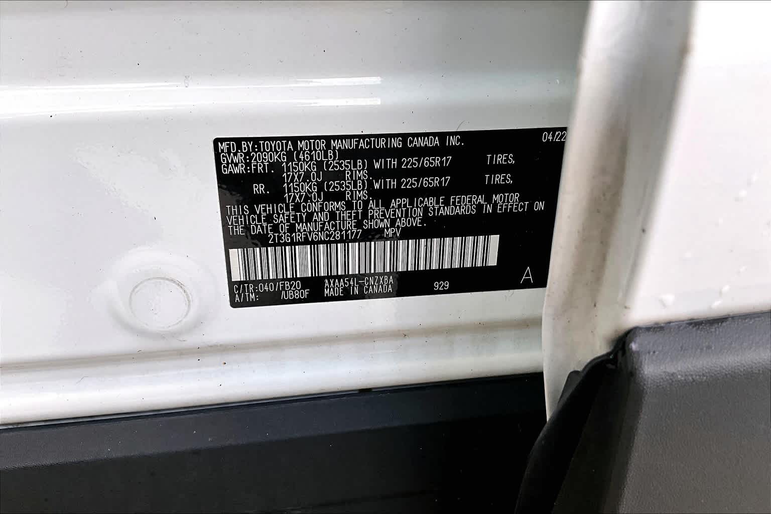 LE | 57,327 milesStock # T71636A | VIN # 2T3G1RFV6NC281177