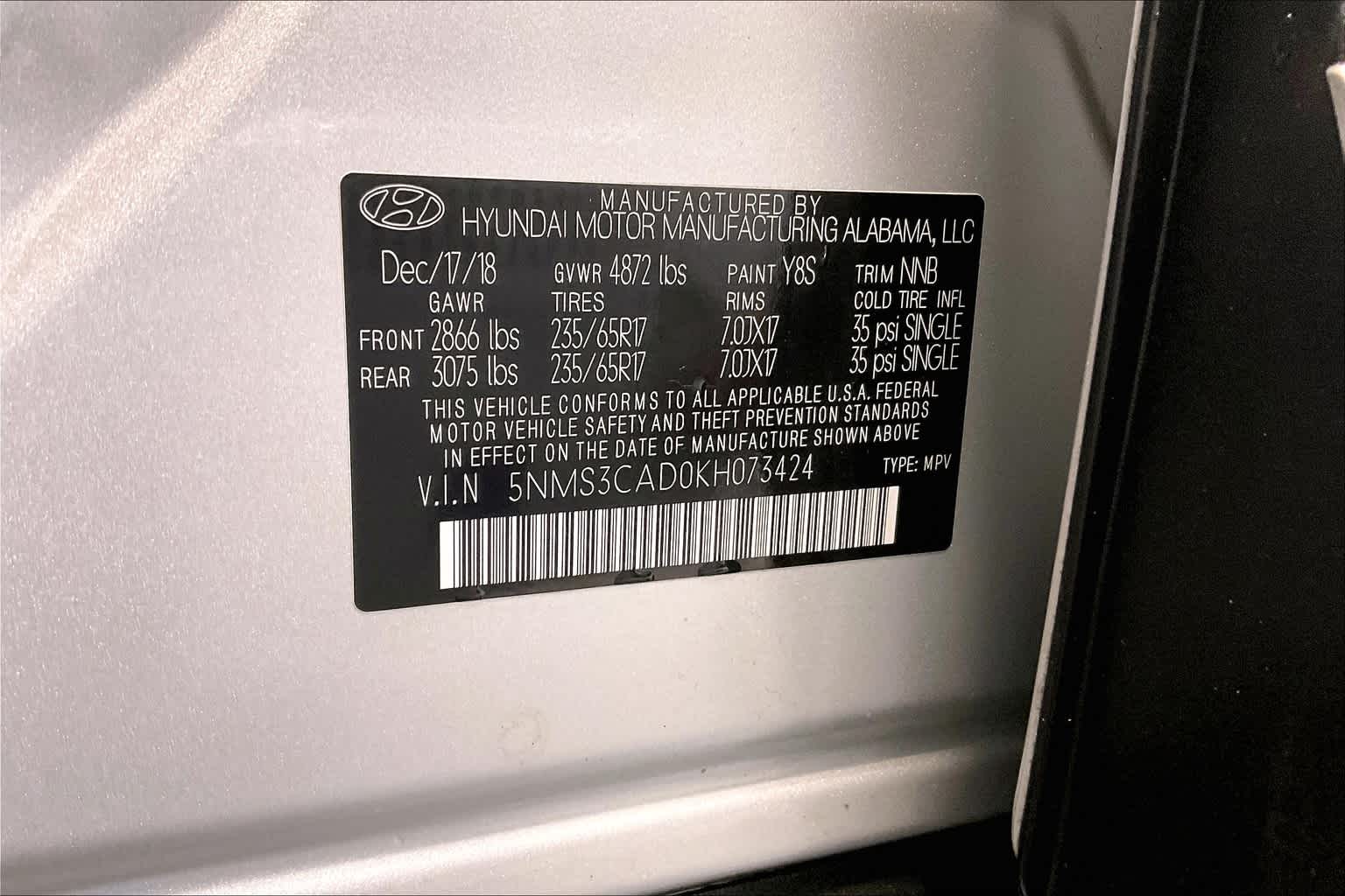 SEL | 87,711 milesStock # HY241015A | VIN # 5NMS3CAD0KH073424