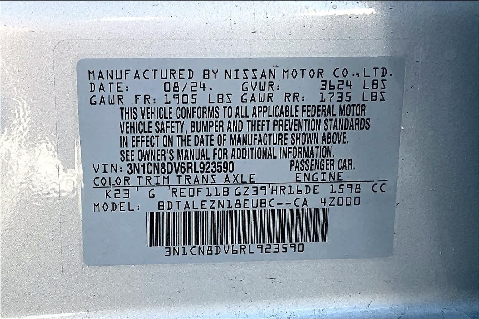 S | 6 milesStock # NSV5196 | VIN # 3N1CN8DV6RL923590