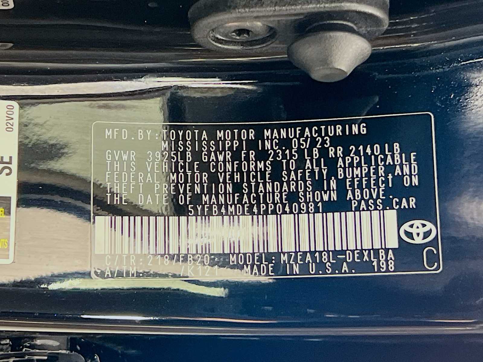 LE | 9,438 milesStock # H6155P | VIN # 5YFB4MDE4PP040981